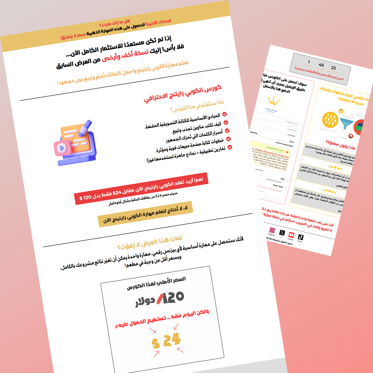قد يكون من 2 إلى 6 صفحات (صفحة هبوط – شكر – عرض – شراء – متابعة...)