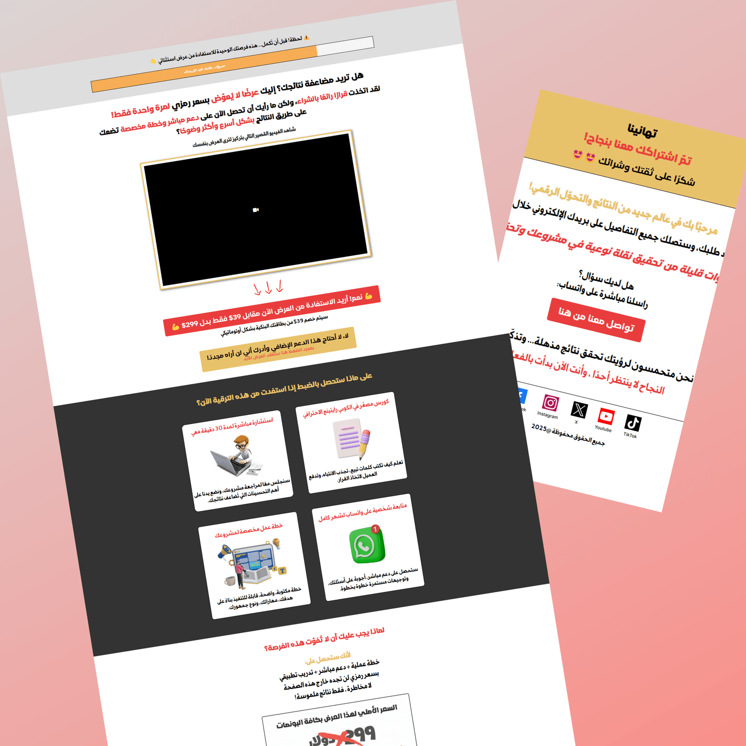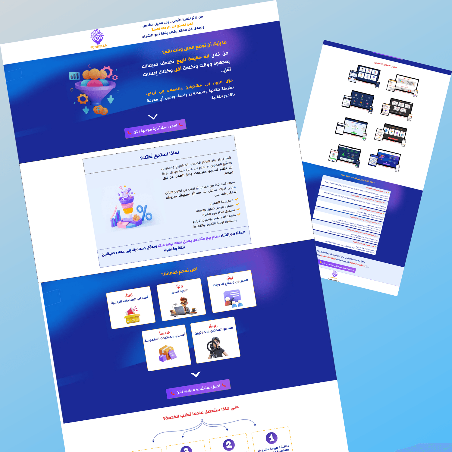 لأننا خبراء بناء الفانلز لأصحاب المشاريع والمدربين وصنّاع المحتوى، لا نقدّم لك مجرد تصميم، بل نجهّز لك نظام تسويق ومبيعات جاهز للعمل من أول لحظة.